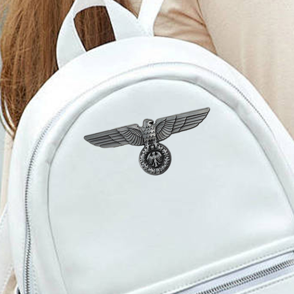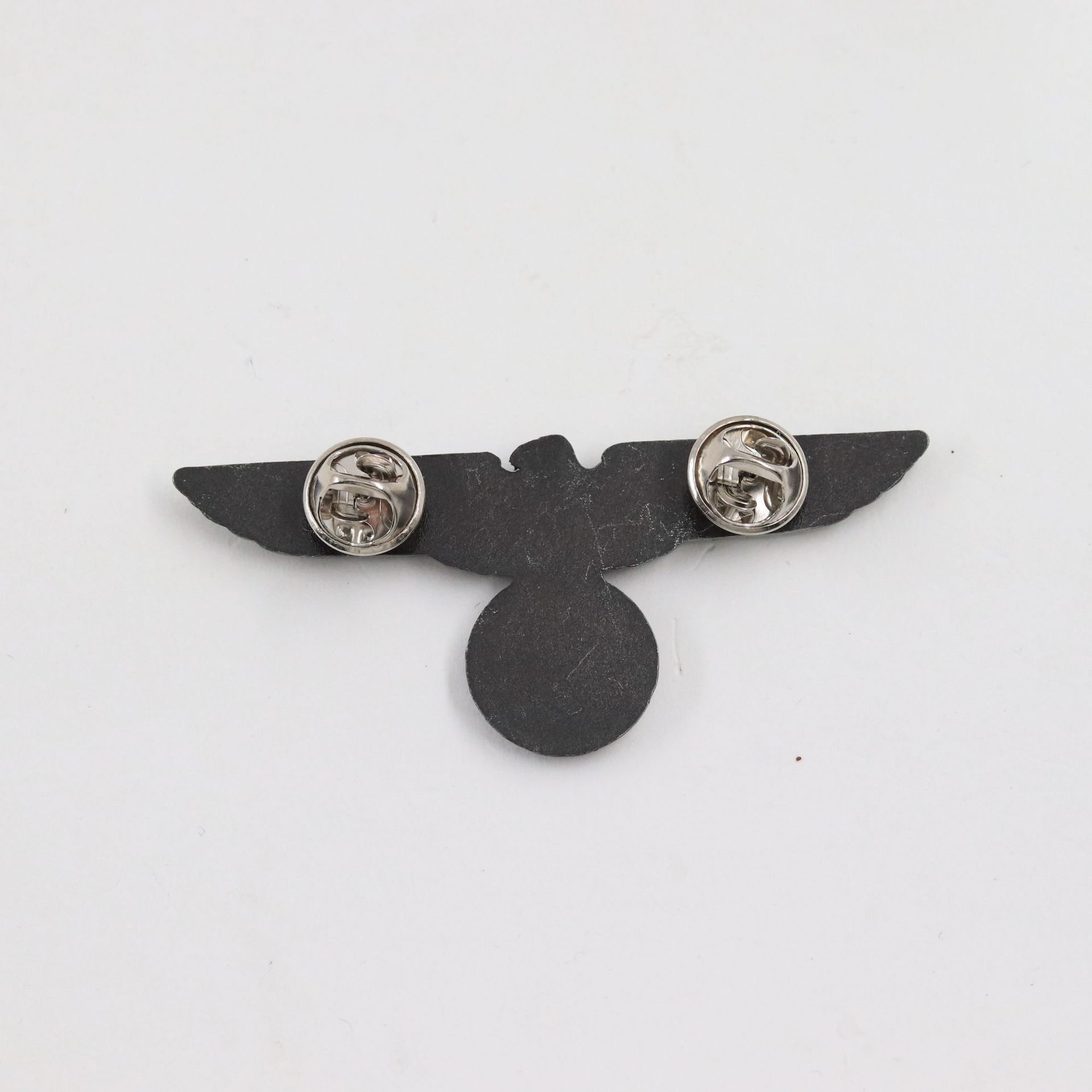This striking brooch features the iconic German Reichsadler (Imperial Eagle) with outstretched wings, clutching a circular wreath that encloses the smaller Bundesadler (Federal Eagle). Crafted in antique silver-toned metal, it’s a tribute to German military and national heritage, with deep embossed details capturing the strength and dignity of the eagle symbol.