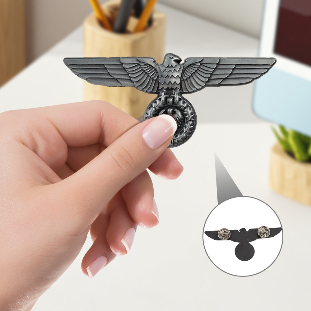 - **Premium Craftsmanship**: Made of durable zinc alloy with an antique silver finish, with layered embossing to highlight feather texture and eagle details.