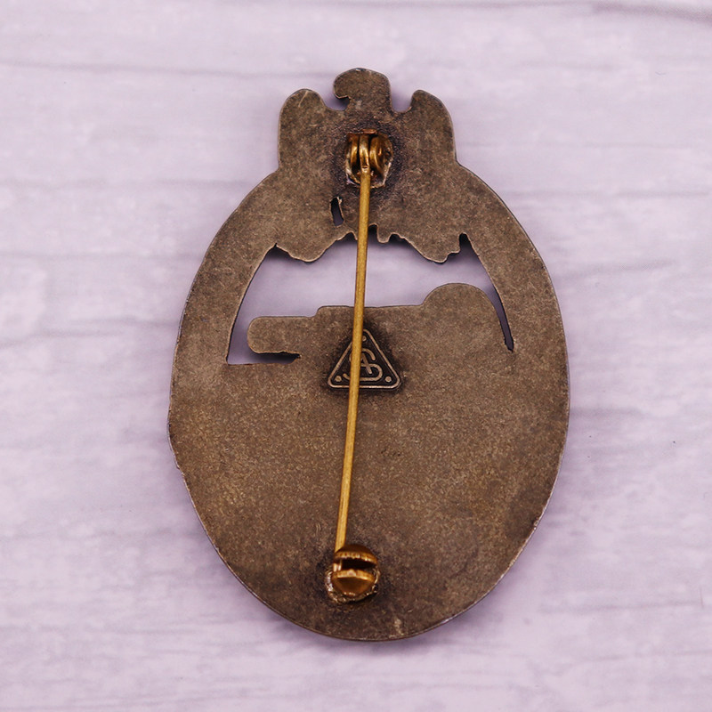 Antique Bronze German Tank Assault Badge Brooch - Panzer Troops Military Heritage Pin