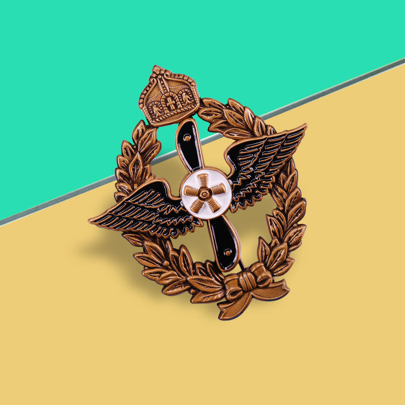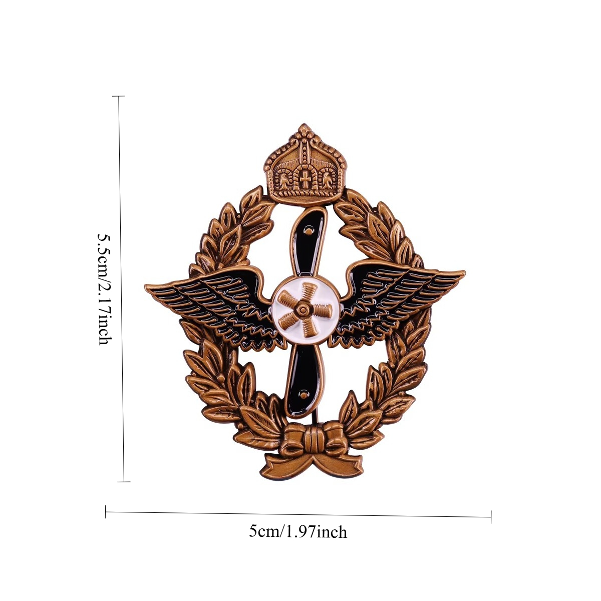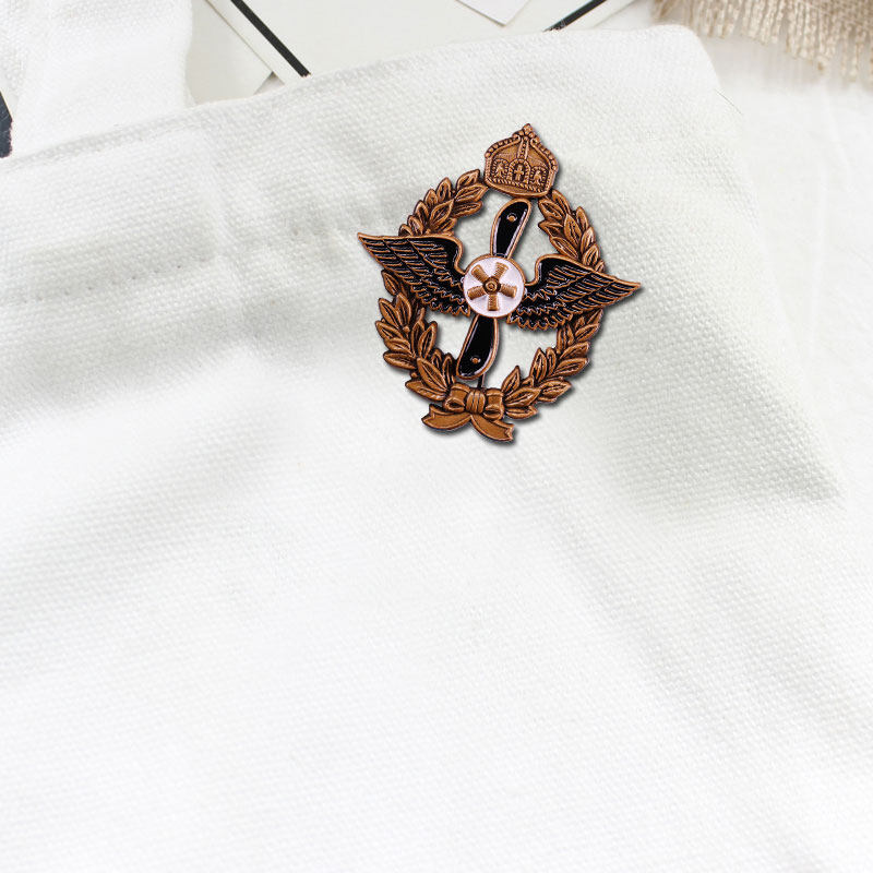 - **Premium Craftsmanship**: Made of durable zinc alloy with an antique bronze finish, accented by black/white enamel for the propeller, with detailed embossed wings, oak leaves, and royal crown.
