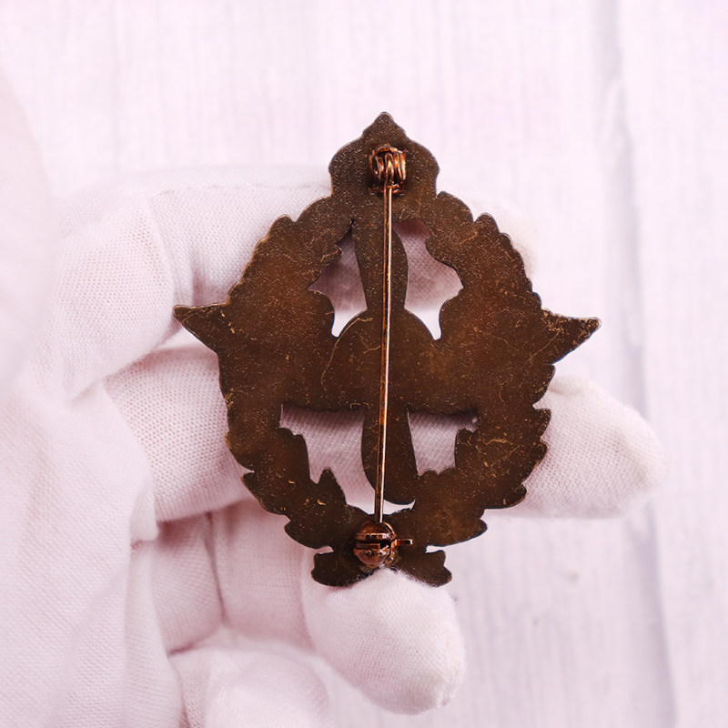 - **Secure Clasp**: Sturdy vertical safety pin back with brass catch, replicating the original military badge hardware.