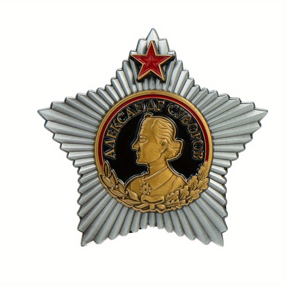 - **Premium Craftsmanship**: Crafted from durable zinc alloy with a dual-tone finish (antique silver & gold accents) and red enamel star, capturing the grandeur of the original Soviet award.